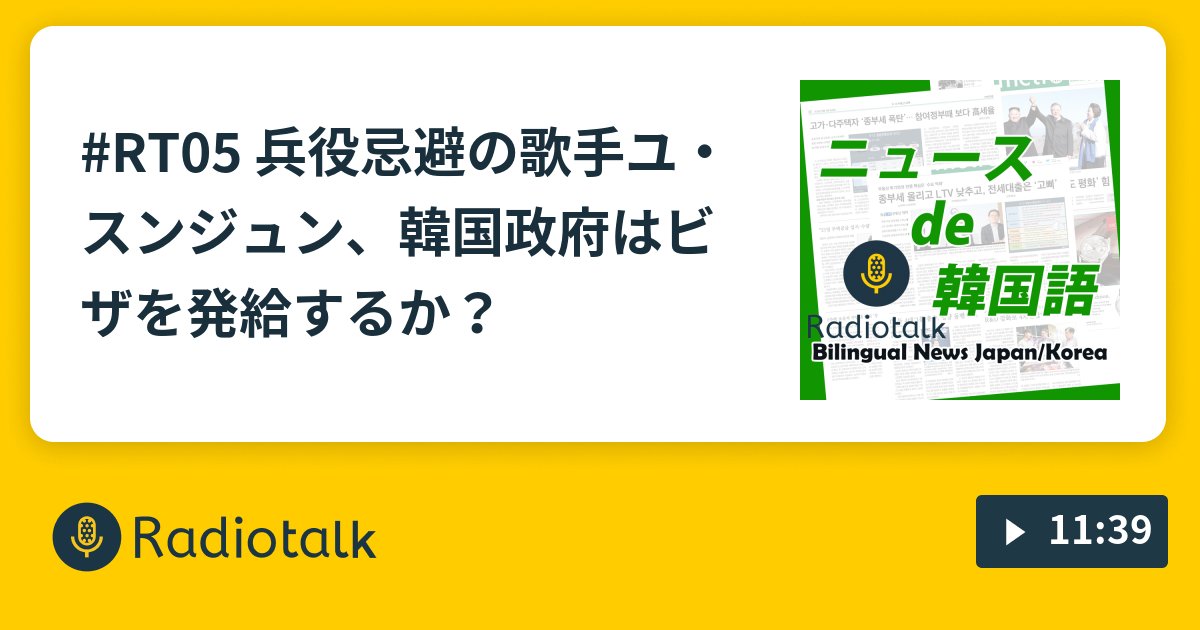 #RT05 兵役忌避の歌手ユ・スンジュン、韓国政府はビザを発給するか?